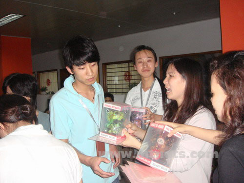 在生日歌的伴随下,6月生日的员工走到蛋糕桌前,满面笑容的接过公司精心准备的生日礼物,与同月出生的同事一起切开生日蛋糕,幸福分享。