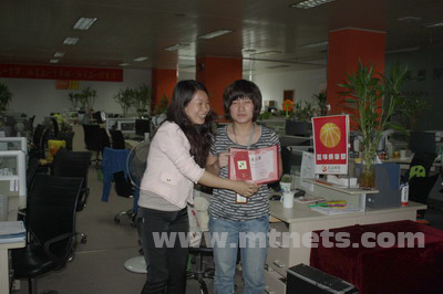 5月全体员工大会中,技术部董小钗获得创新模范奖。自进公司以来董小钗一直工作出色,大胆创新,在程序模块的研制上提出众多建设性的思路,并予以执行,善于挑战高难度技术工作。