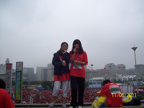 朱晓明:1、我迟到了几分钟,结果人山人海中找不到组织了,一个人孤零零的跑,一路上也没看到公司同事(不过别人看到我,只是不敢确认是不是我)当时以为自己肯定是公司最后一名,没想到居然还有好几个男生比我还慢。