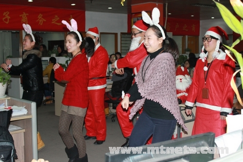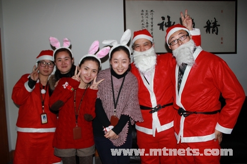 第二波活动是平安夜每个必威中文官网首页都受到了一个精美包装的苹果,公司祝大家来年平平安安,圆圆满满。圣诞节当天圣诞老人和兔女郎们闪亮登场,为大家表演了明通版的《江南STYLE》,并为大家派发了袜子,毛绒玩具等各种小礼物。