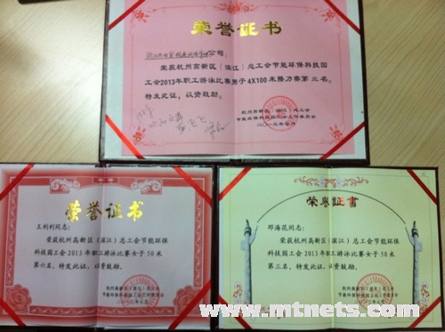 比赛间歇期,选手们谈论着小时候学游泳的点滴,开心的瞬间减少了比赛带来的疲劳,6个人,每人起码参加两项赛事,对大家的体能是个考验,但最后取得了不错的成绩,夺得男子400米接力的季军,食品机械网的邓海花夺得女子50季军,优化部的王利利夺得女子50米第六名,为公司取得了荣誉,本人获得了奖金和证书。