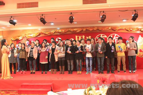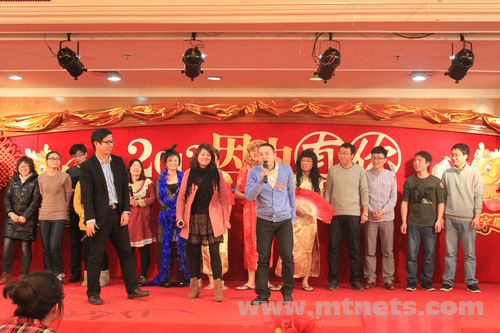 本次年会由精彩的部门表演,优秀员工及主管颁奖以及抽奖组成。各部门的表演突破创新,精彩绝伦,观众叫好声不断。庆贺公司2011年的丰收,本次年会奖品丰硕,除一二三等奖之外,特别设置了温暖奖,“最”奖,本命年奖,龙年大吉奖,让全体员工共享盛宴的同时,满载而归。充分见证了公司“创造网络神话,分享发展成果”的优良企业文化。