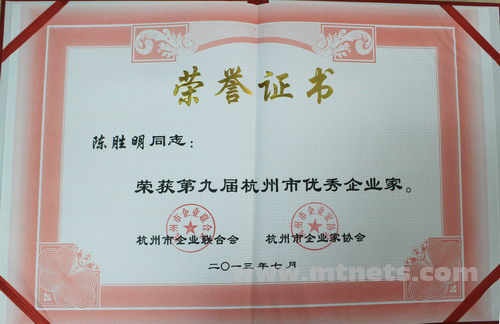 第九届杭州市优秀企业家评选活动在市经信委的指导下,由市企联、市企协组织圆满完成,本次评选活动经推荐、初审、考评、公示、审定等环节,对2012年全市坚守在各行业领域努力奋斗,为杭州经济社会发展做出了贡献的卓越企业家进行综合选评。杭州市经信委市场处处长蔡德全宣读了关于表彰第九届杭州市优秀企业家的决定,市经信委领导为优秀企业家颁奖。