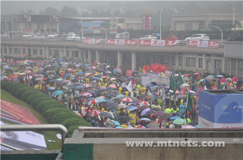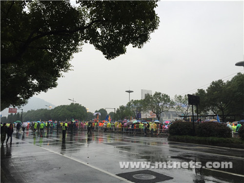 11月1日,天公不作美,下起了小雨,最低气温也只有12摄氏度,还有3级大风,寒意逼人,但这雨丝毫没有影响到马拉松跑友们高涨的热情。上午8时,2015杭州马拉松在杭州黄龙体育中心广场鸣枪开跑。