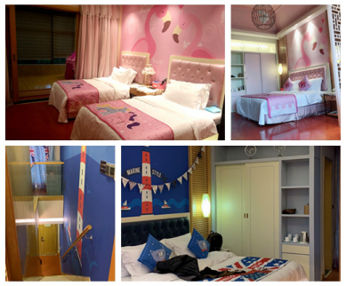 午饭之后,小伙伴们都回到房间休息一下。这家酒店的主题风格独特(室外参考上文),以庭院雅居、别墅为主。而我们选择了粉色和蓝色两种主题,粉色瞬间激起人的少女心,感觉自己萌萌哒!