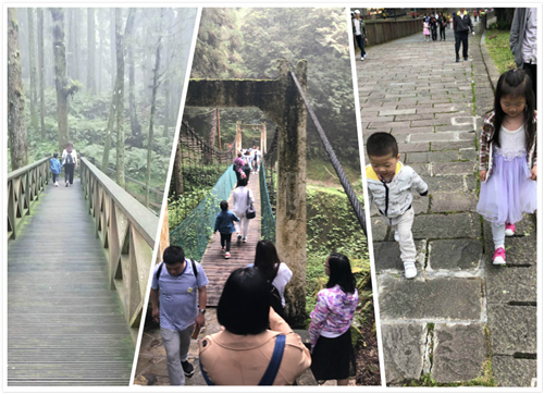 阿里山作为中国台湾的“森林宝库”,这里树木成林,枝叶繁茂,青翠挺拔,空气清新,是中国台湾的天然氧吧!而明通小伙伴们更是个个身强力壮,个个都是好样的,他们快速的走在游客前端,尽情享受着大山深处的新鲜氧吧。