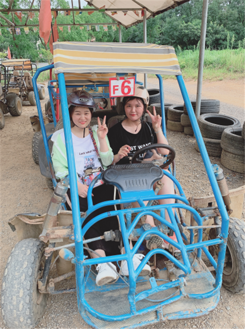 虽然薰衣草花海早就谢了,但我们为了娱乐项目而来的,主要有山地卡丁车,碰碰船,滑草,骑马,射箭,和“草泥马”互动。游园一圈下来意犹未尽,有些同学还善于制造笑点,体会到了欢乐和轻松一刻。