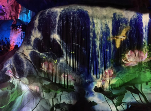 结合地貌的灯光景观秀注意瀑布那地貌真的像水流