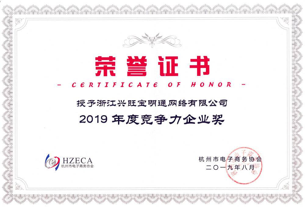 首页新闻中心公司新闻【荣誉】2019全球新电商大会盛大召开,杭城企业智涌钱塘共话未来-兴旺宝荣获“2019年度竞争力企业”