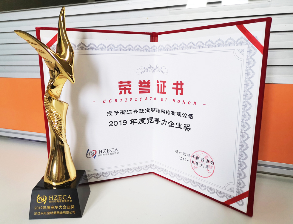 【荣誉】2019全球新电商大会盛大召开,杭城企业智涌钱塘共话未来-兴旺宝荣获“2019年度竞争力企业”