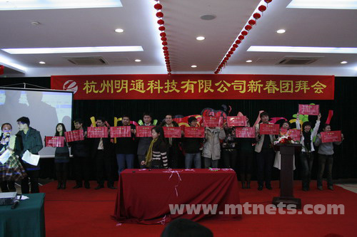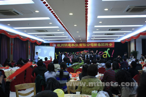浓浓喜气迎新春,点燃激情,挑战2009。1月17日,杭州明通科技有限公司09年新春团拜会在杭州百家苑隆重举办。公司总经理陈胜明对全体必威中文官网首页表示了新年祝贺和衷心的感谢。陈总在团拜会上致辞,回顾2008年辉煌成绩,展望2009年精彩明天。他对08年公司规模荣誉、销售业绩、管理制度等方面取得的斐然成绩表示充分的肯定,对发展中存在的不足和缺憾进行深入的总结。表示09年明通将继续保持快速的发展和扩张之路,金融危机的冬天不会阻挡明通大步前进的步伐。坚持以创新发展的思路,全面升级服务环节,以提升企业网络竞争力为使命,为客户创造更大的价值,推动行业企业电子商务发展进程。他激励所有员工迎难而上,充满激情,一起挑战2009!